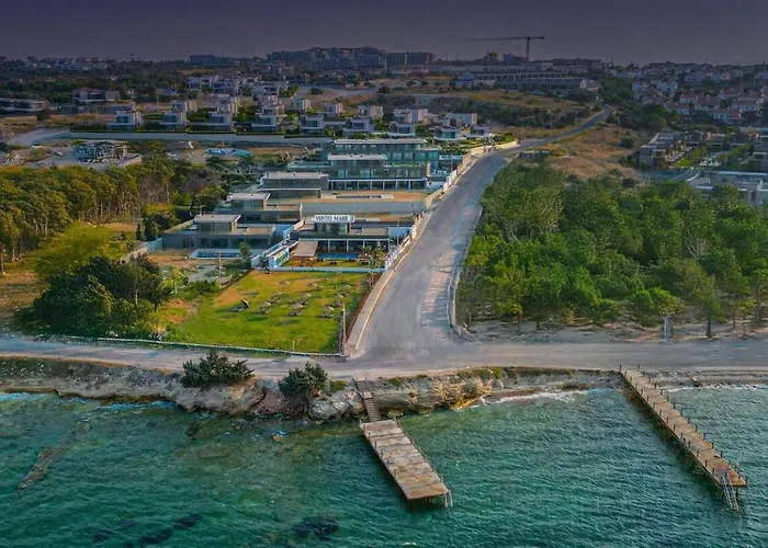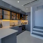 コジャカリ ビーチから徒歩で25分かかる所にに位置するLuxury Seafront Duplex VillaはÇeşmeの器具でいっぱいの台所のある施設を提供します。 2のベッドルームのLuxury Seafront Duplex Villa Çeşmeは海の眺めに面しています。